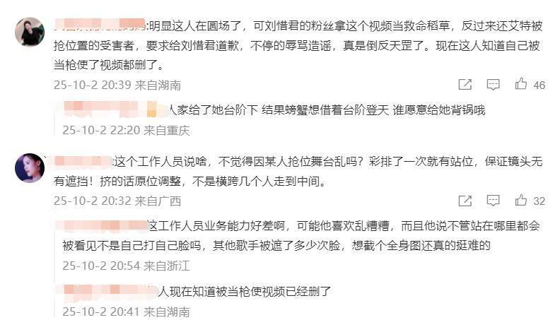 对于此,网友解读称该名工作人员发视频是为刘惜君圆场,但她的粉丝倒反天罡,让陈丽君道歉,这使得该功能工作人员意识到被人当枪使了,所以删除了视频。