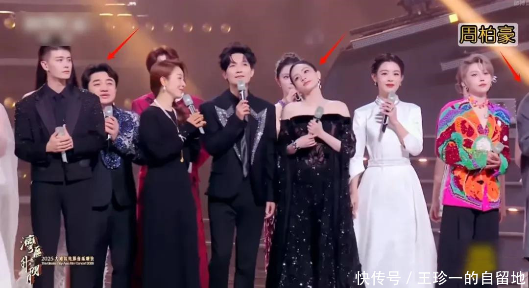 从已经曝光的彩排视频中可以看到。刘惜君的站位是在周柏豪的右边,他们两人都在C位的右侧。