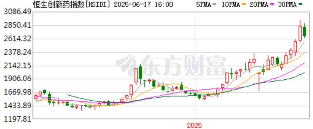 2025年年初,中证创新药产业指数在1500点附近,截至6月17日,已经涨至1800点,涨幅20%。A股不少创新药公司已经创出历史新高,有的公司上涨态势之凶悍,甚至超过2015年大牛市。