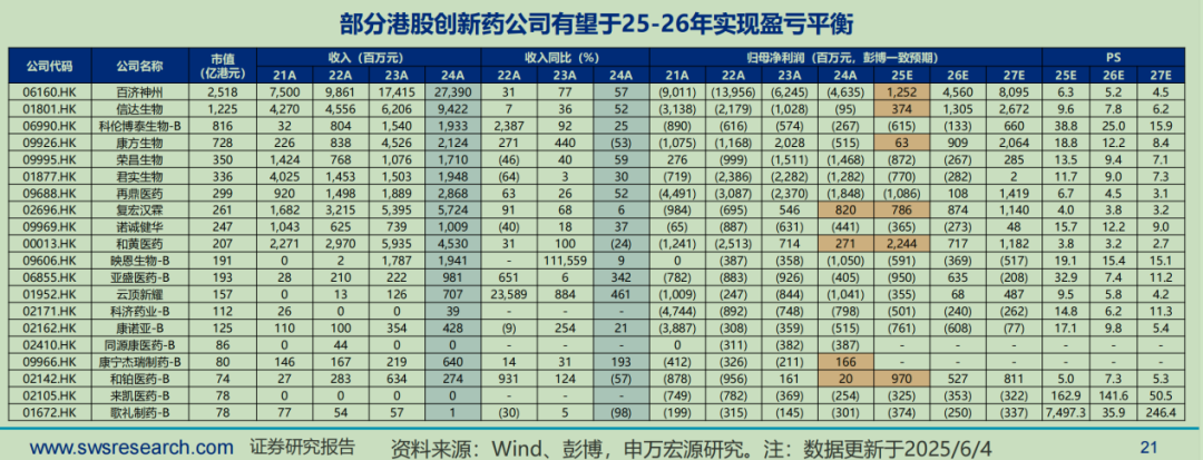 截至目前,纯粹意义的创新药企业,能够盈利的非常稀少。截至2025年,只有百济神州、信达生物、康方生物等公司有望开启盈利周期。